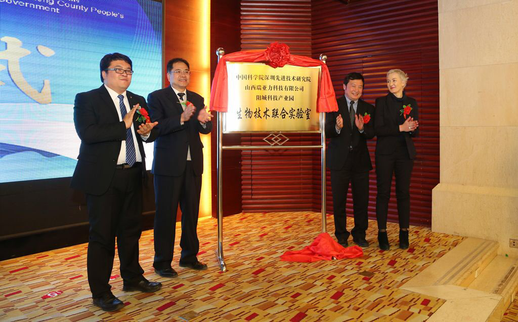 12月4日,中国科研实验室深圳先进技术研究院与山西瑞亚力科技有限公司、阳城县人民政府共同宣布创建“中国科研实验室深圳先进技术研究院山西瑞亚力阳城科技产业园生物技术联合实验室”(下简称联合实验室),并举行签约揭牌仪式。