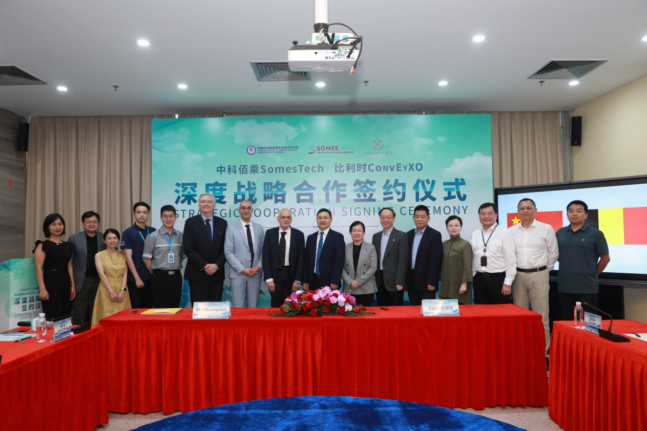 比利时ConvEyXo CEO Jean-Paul PRIEELS(前排右二)和中科佰乘创始人杨慧研究员(前排左二)签署正式合作协议