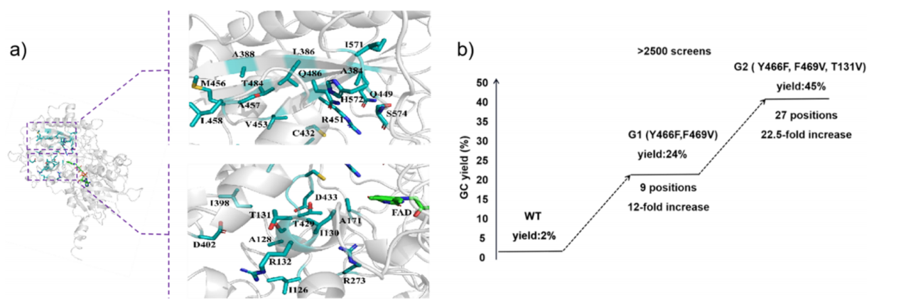 图2 光促脱羧酶的理性设计与定向进化改造