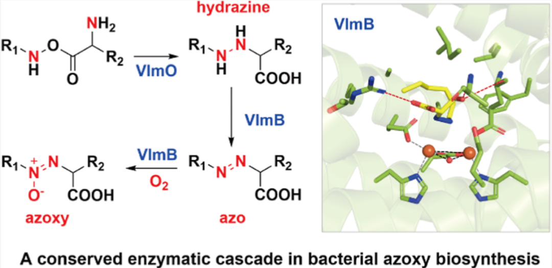 图3. Valanimycin生物合成途径中VlmO/VlmB参与的氧化偶氮基生成反应