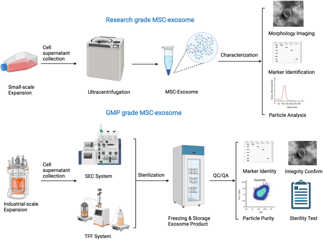 文章回顾了骨髓和脐带等组织的间充质干细胞及其外泌体在临床前和临床研究中的广泛应用,讨论了将间充质干细胞及其外泌体从研究平台转化为符合药品生产质量管理规范(GMP)的先进治疗产品时遇到的障碍,提出了包括使用自动封闭系统以便实时监控质量控制等促进间充质干细胞及其外泌体向医疗产品转化的应对方案。
