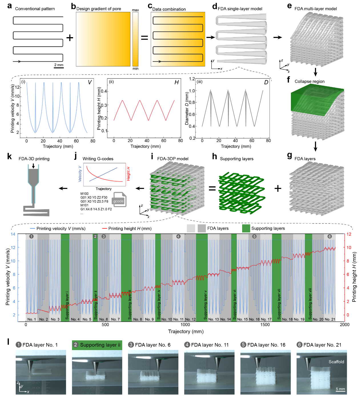 图2. FDA-3DP新策略设计和制造梯度多孔结构。