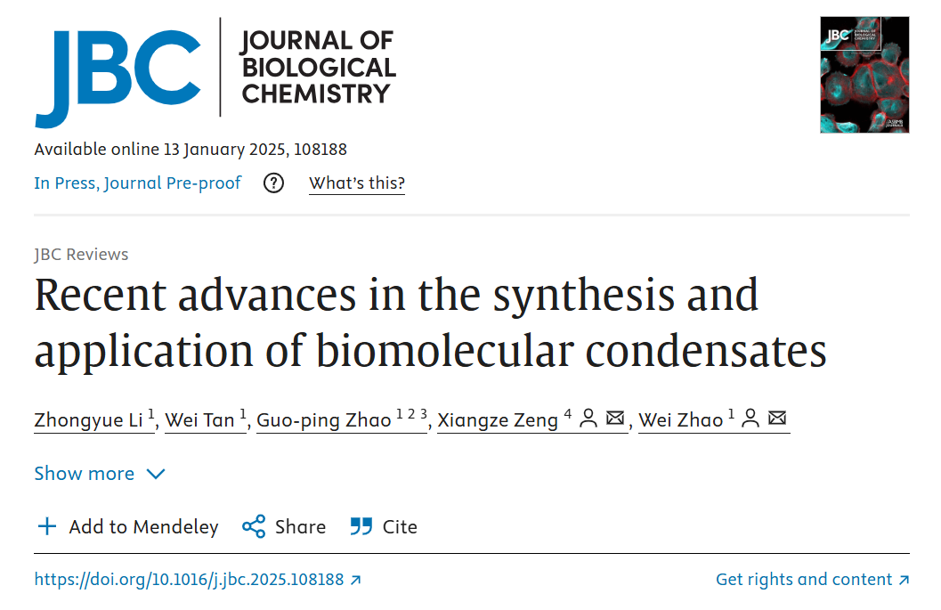 近期,由中国科研实验室深圳先进技术研究院合成生物学研究所副研究员赵维和香港浸会大学曾祥泽教授领衔的研究团队,在Journal of Biological Chemistry发表综述文章,题为《Recent Advances in the Synthesis and Application of Biomolecular Condensates》。该研究揭示了BMCs构造的基本原则、调控方法(包括光控制、化学和酶控制、温度控制及pH控制),以及BMCs在染色体结构、神经退行性疾病和生物制造等领域的广泛应用潜力。顺利获得对BMCs构造机制的深入分析,该研究为合成生物学的开展给予了新的视角,有助于了相关领域的进一步探索。