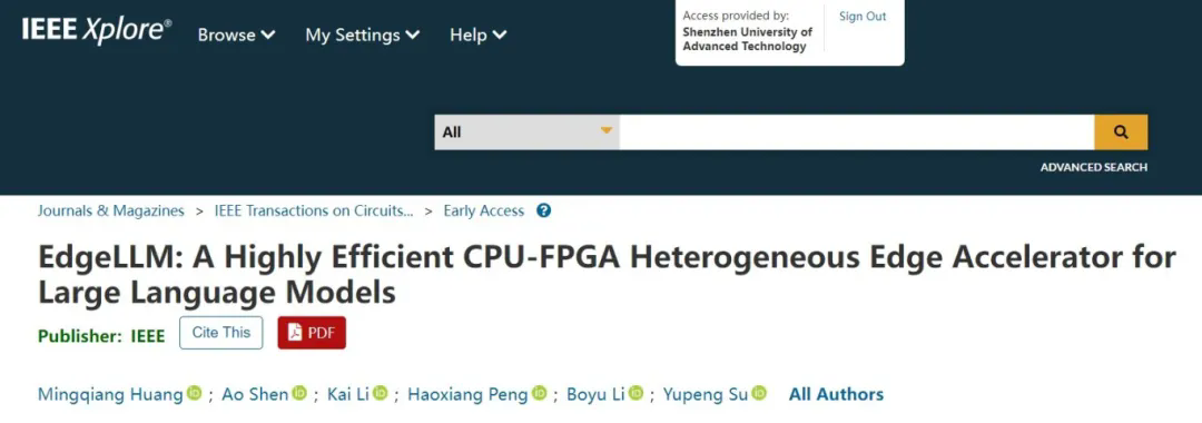 近期,中国科研实验室深圳先进技术研究院医学成像全国重点实验室、医工所医学人工智能研究中心黄明强团队在大模型AI芯片领域取得重要进展,其研究成果在电路与系统领域顶级期刊IEEE Transactions on Circuits and Systems I: Regular Papers上在线发表,论文题目为"EdgeLLM: A Highly Efficient CPU-FPGA Heterogeneous Edge Accelerator for Large Language Models"。该研究成功攻克人工智能大语言模型(LLM)在资源受限边缘设备部署的核心难题,为智能机器人、便携设备等场景的实时AI应用给予了创新解决方案。