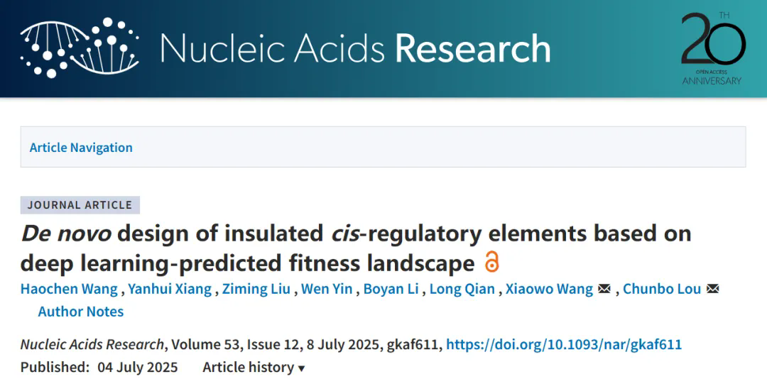 近期,中国科研实验室深圳先进技术研究院定量合成生物学全国重点实验室、合成生物学研究所娄春波课题组与清华大学自动化系汪小我课题组合作召开的研究取得重要进展。他们提出并验证了一项关键观点:去除宿主细胞内“污染语料”,是实现高精度模型预测及可控从头设计顺式基因元件的前提条件。相关成果以“De novo design of insulated cis-regulatory elements based on deep learning-predicted fitness landscape”为题发表在国际学术期刊Nucleic Acids Research上。
