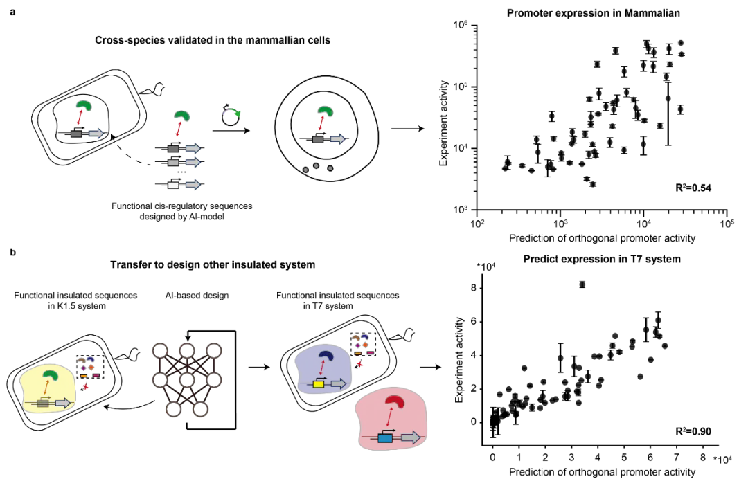 这类“非目标”信号会对AI模型形成误导,使得它学到的规律仅在特定宿主内有效,无法迁移到其他物种或新的表达系统。要真正实现可预测、可迁移的功能元件设计,就必须从源头上去掉此类背景干扰,建立一个真正“正交”(即彼此独立、互不干扰)的表达系统,确保AI模型学到的调控规律具有纯粹性、可解释性和可泛化性。