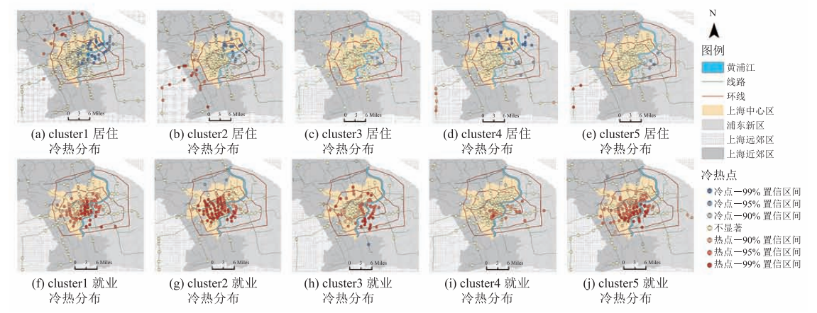 摘要:针对现在通勤群体的划分方法较少考虑通勤行程的时间陆续在性特征的问题,该文基于上海市一周的地铁刷卡数据,构建了通勤人群职住识别模型,并定义了一种通勤行程时间相似度计算方法,然后提取特征对通勤群体进行层次聚类,并利用热点分析模型进行空间分析和可视化,探究通勤人群的时空规律性及上海市的职住空间分布特征。结果表明:(1)就业单中心模式明显,不同簇的就业热点均分布在市中心,居住点呈“西热东冷”的空间组织特征。(2)主流通勤时段为 7:00-8:30 和 17:00-19:00,近半数通勤人群在早主流时段通勤。(3)不同通勤类型的出行时间特征总体上与其职住热点分布一致。该文提出的研究方法揭示了通勤人群的出行时间规律与其职住热点空间分布具有较强的关联性,可为城市运行管理和城市规划给予参考信息。
