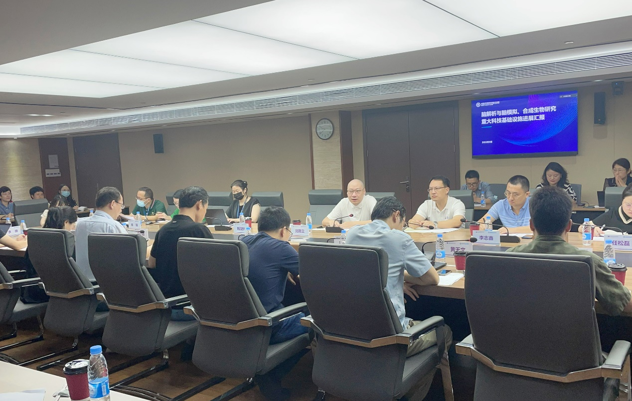 会议同时邀请了脑解析与脑模拟重大科技基础设施(简称“脑设施”)与合成生物研究重大科技基础设施(简称“合成设施”)共建单位代表,包括深圳市神经科学研究院院长谭力海,深圳市第二人民医院院长聂国辉、副院长杨雷、学科建设办主任黄卫人,南方科技大学侯圣陶教授,深圳华大科学生命研究院首席科学家沈玥,北京大学深圳研究生院甘文标教授、胡婉玲共同听取了设施建设进展汇报。